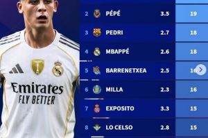 体育资讯9月30日讯 德转盘点了本赛季西甲创造机会榜单,其中居勒尔共计21次创造机会居首,具体如下(场均数据+总数据):