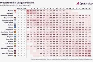 体育资讯10月15日讯 英超七轮过后,数据机构OPTA超级计算机预测本赛季英超冠军↓